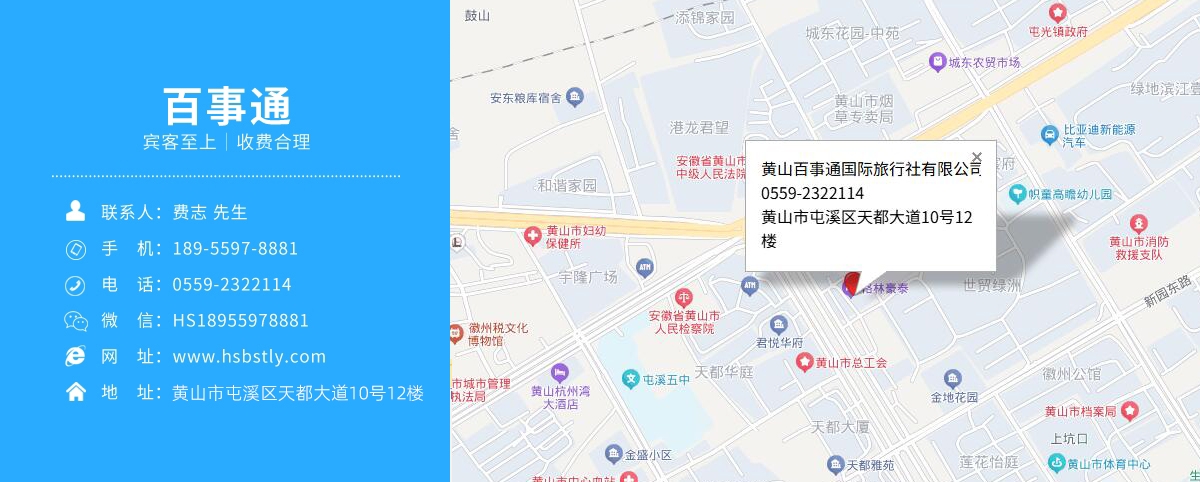 請(qǐng)百度搜索??黃山百事通國(guó)際旅行社有限公司??關(guān)鍵詞找到我們!